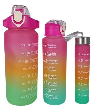 Set X3 Botellas Agua Motivacional Deportiva Entrenamiento Color Rosa Chicle